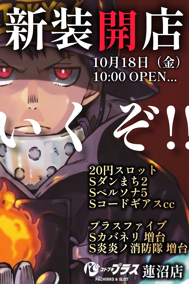 店長です。プラスファイブ(+5円スロ)にカバネリと炎炎増台しました。