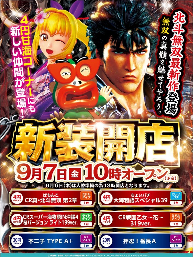 9月7日 本日新装開店 北斗無双第2章 導入済み😆😆
