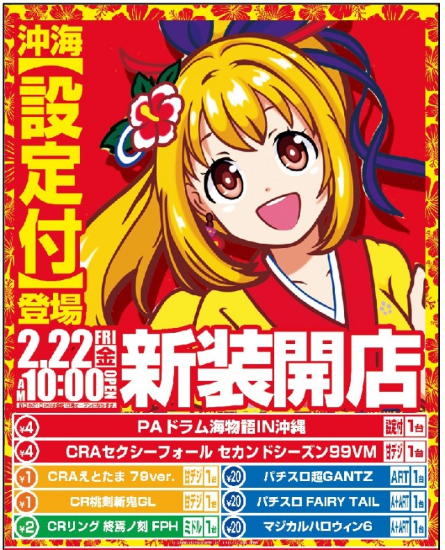 本日新装開店! P喰霊 零 SマイジャグラーⅣ他多数登場!