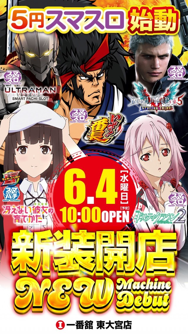 【明日】6月4日(水)新装開店☆★5円スロット始動開始!!