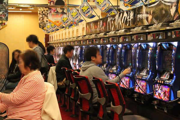 お昼を過ぎてからもやはり「ぱちんこCR北斗の拳6 拳王」の活況ぶりは健在で、多くの席が人で埋まっていた。枠がレインボーに輝いたりボタンを連打して自分のキャラクターが勝ったりする度に、ガッツポーズをして喜ぶ姿は心から楽しんでいるようだった。