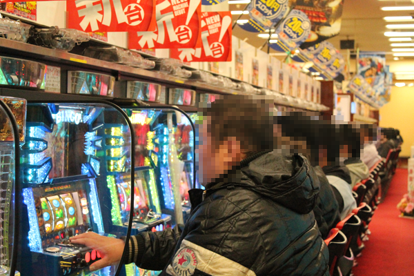 開店後にまず目に入ったのは入口一番近くにある「ぱちんこCR北斗の拳6 拳王」。最新の導入機種ということもあり一番の客付きでにぎわっていた。30分経たないうちにバトルモードへ突入し、バトルが始まる度に勝利を願う姿からは機種の魅力を存分に堪能している様子が伝わってきた。