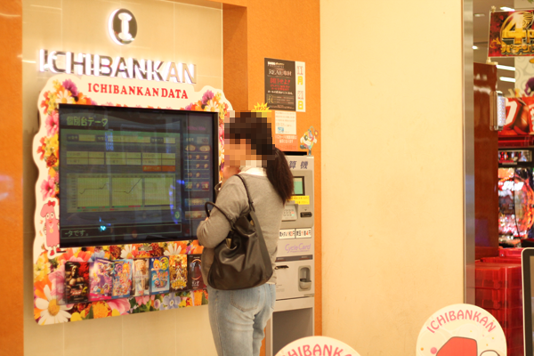 入り口付近には大きなデータ表示機が完備されており、数日前のデータを調べている様子が見られる。開店後、プレイヤーがスランプグラフを前に真剣な表情で思案しており、期待のできる台なのかどうかを見極めているような光景も見られた。