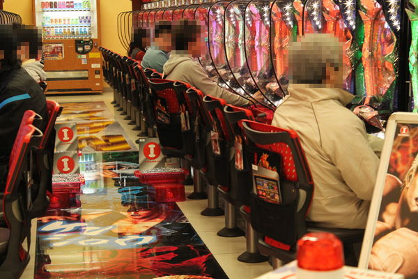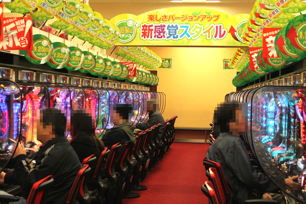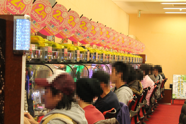 昼過ぎになると、パチンコ・パチスロ両コーナーともに活気に溢れていた。