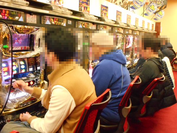 朝イチの20円パチスロでは「パチスロ アラジンAⅡ」が1番人気。定番の人気機種とあってか、すぐさま満席となり大盛り上がりであった。