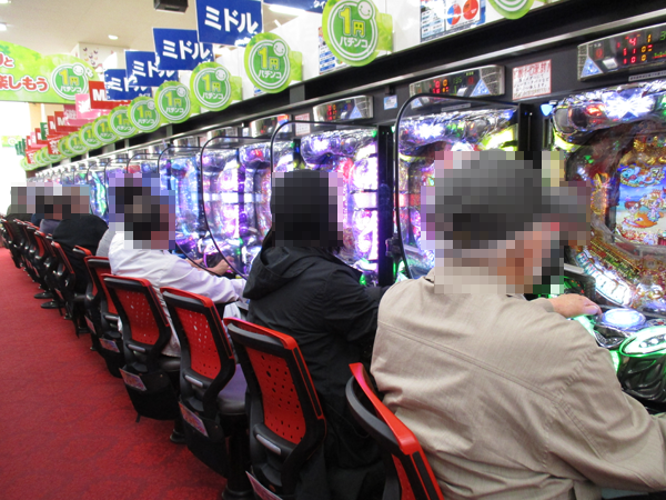 朝から賑わっている1円パチンコと1.25円パチンコでは、海物語シリーズが高稼働をキープ。プレイヤー同士で会話を楽しみながら遊技をしている姿なども確認することができた。