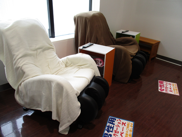 レストコーナーに設置してあるマッサージチェアなど、1日じっくりと楽しめるような設備も整っていた。