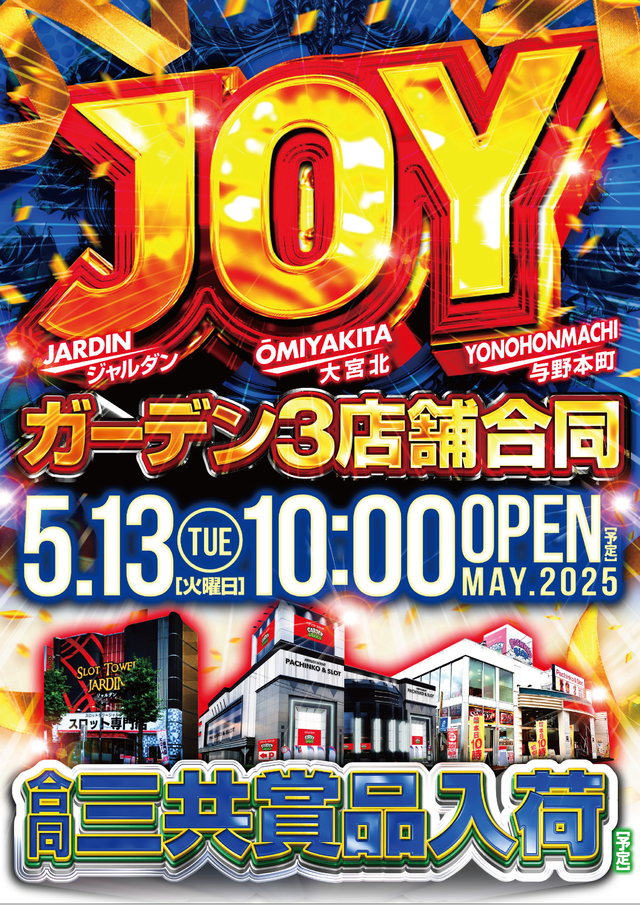 本日5月9日(金)新装開店10時(予定)!最新台積極導入!!