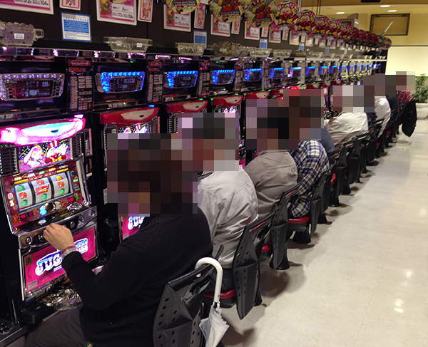 15時過ぎのホール内で、ひときわにぎわっていたのが20円パチスロのコーナー。