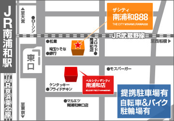 JR京浜東北線・JR武蔵野線 南浦和駅から徒歩2分 車:提携駐車場有り 自転車:駐輪場完備 |