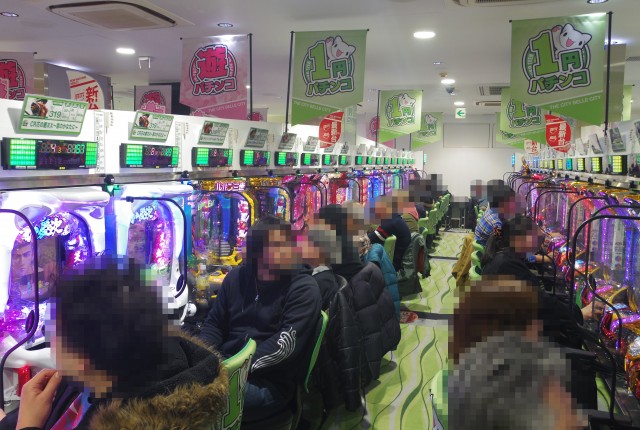 1円パチンコも好評。「CR烈火の炎2」や「CR花の慶次X~雲のかなたに~」、海物語シリーズなど、スペックを問わずに支持されており、プレイヤーたちはじっくりと遊技を楽しんでいる様子だった。