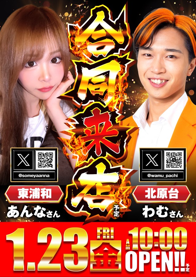 1月23日(金)あんなさん来店&北原台合同10時開店予定!