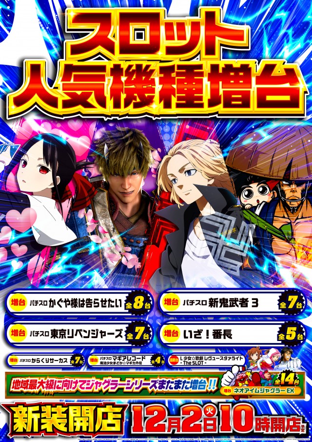 ガーデン東浦和明日のご案内12月9日(火)新装開店パチンコ/スロット新コンセプト展開!!!よっしーさん来店予定!