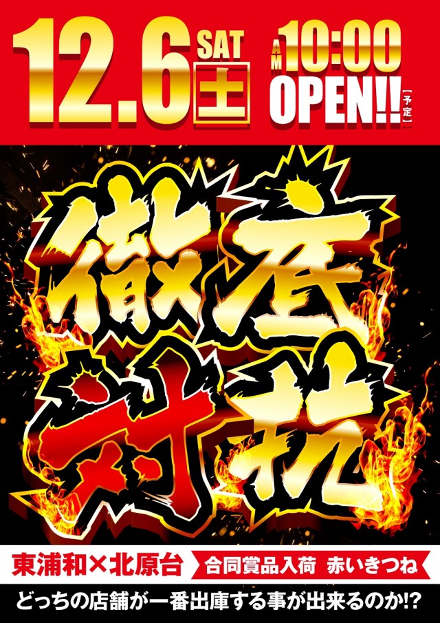 ガーデン東浦和明日のご案内12月11日(木)新装開店★☆★3日目★☆★パチンコ/スロット新コンセプト展開!!!