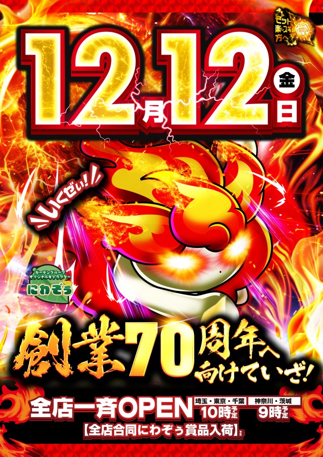 ガーデン東浦和明日のご案内12月10日(水)新装開店★☆★2日目★☆★パチンコ/スロット新コンセプト展開!!!よっしーさん連続来店!