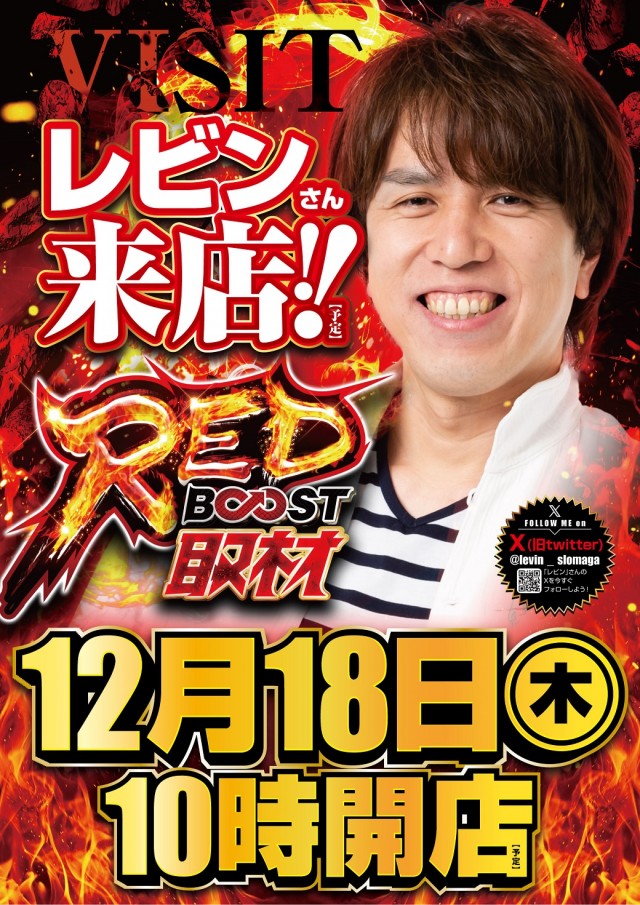 明日18日㊍REDブースト取材&スロマガレビンさん来店予定!