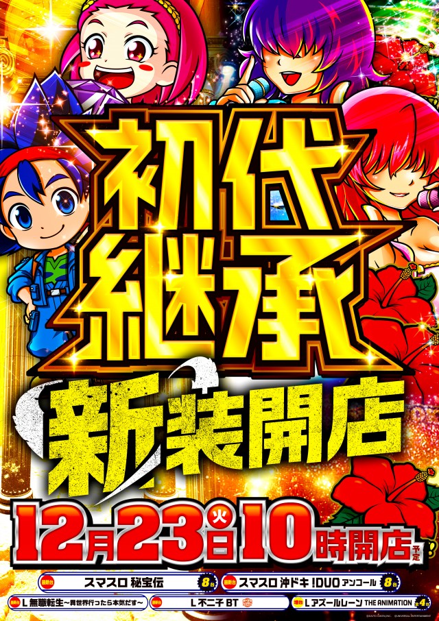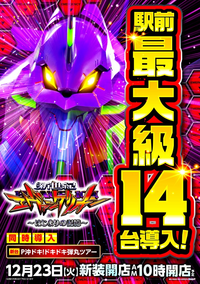 ガーデン東浦和明日のご案内12月14日(日)10時開店予定パチンコ/スロット新コンセプト展開!!!梅屋シンさん来店予定!!