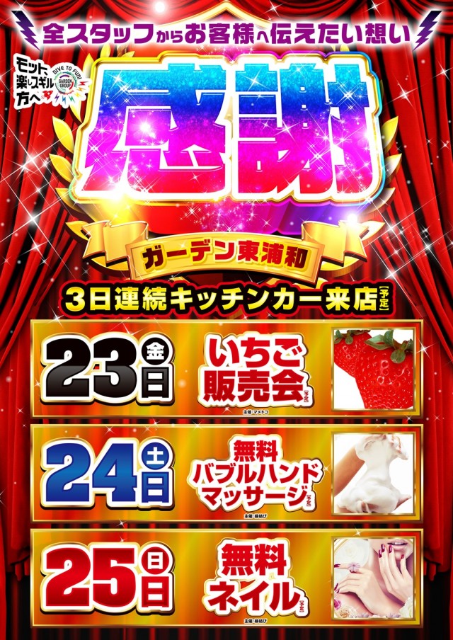 ガーデン東浦和明日のご案内1月16日(金)10時開店予定★☆★ファン感謝デー★☆★