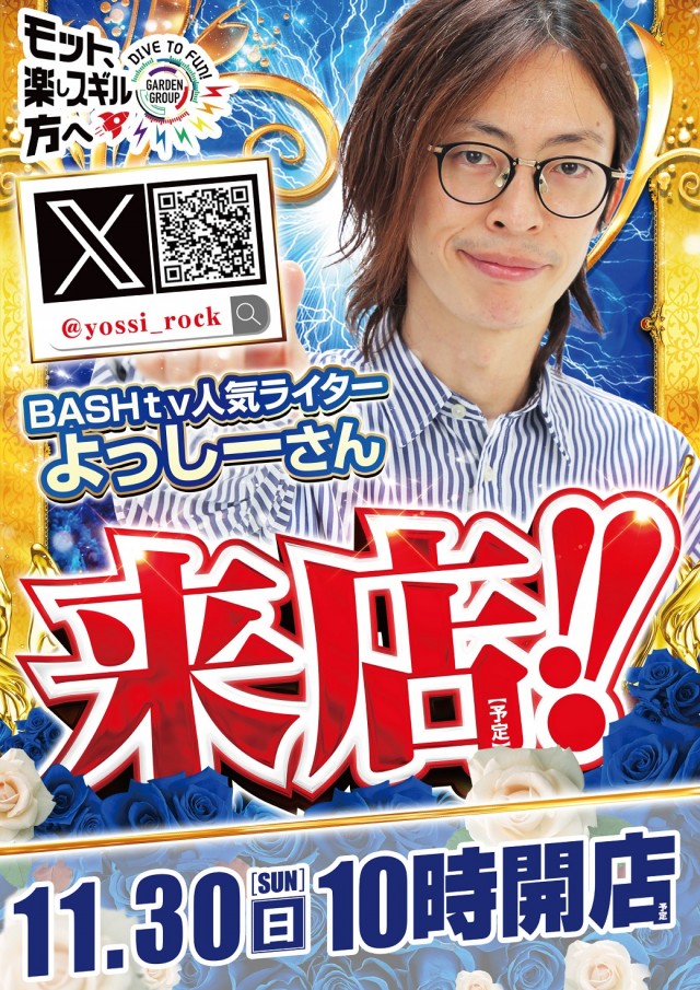 ガーデン東浦和明日のご案内11月30日(日)BASHtv人気ライターよっしーさん来店予定10時開店予定