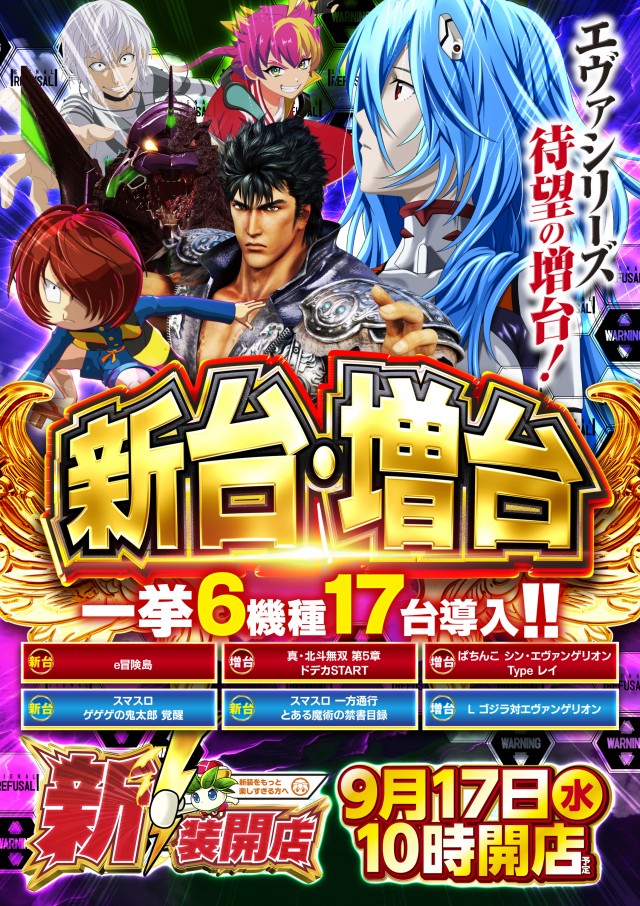 ガーデン東浦和明日のご案内10月1日(水)10時開店予定新装開店一挙27機種102台導入!!