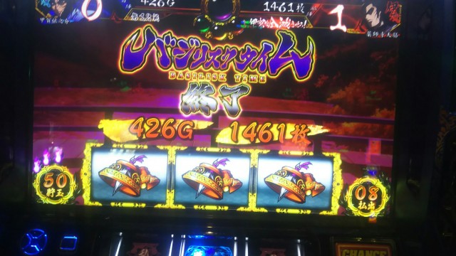 弱チェリー確率は1/128.6と良くはありませんでしたが、隣のお兄さんは直撃を引いていたり、店内も庭の日!って感じでした。