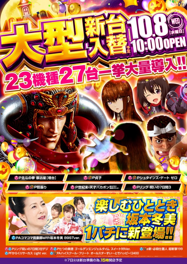 ぱちんこすろっと新台入替の前日は15時オープンとなります |