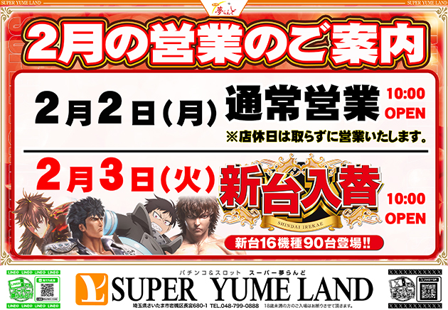 2/3(火)新台入替16機種90台!『しえ』さん来店予定!
