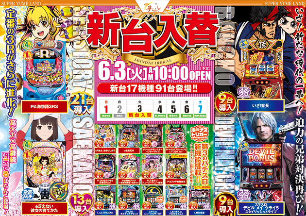 7月9日(水)新台入替 『Rena』さん実戦来店予定!