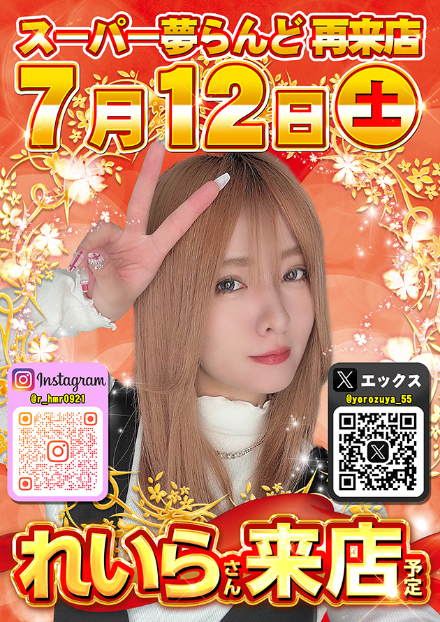 令和7年7月7日(月)『しえ』さん実戦来店予定!