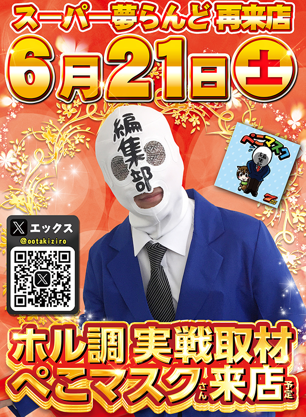 6月21日(土)パチ7ホル調『ぺこマスク』さん実戦来店予定!