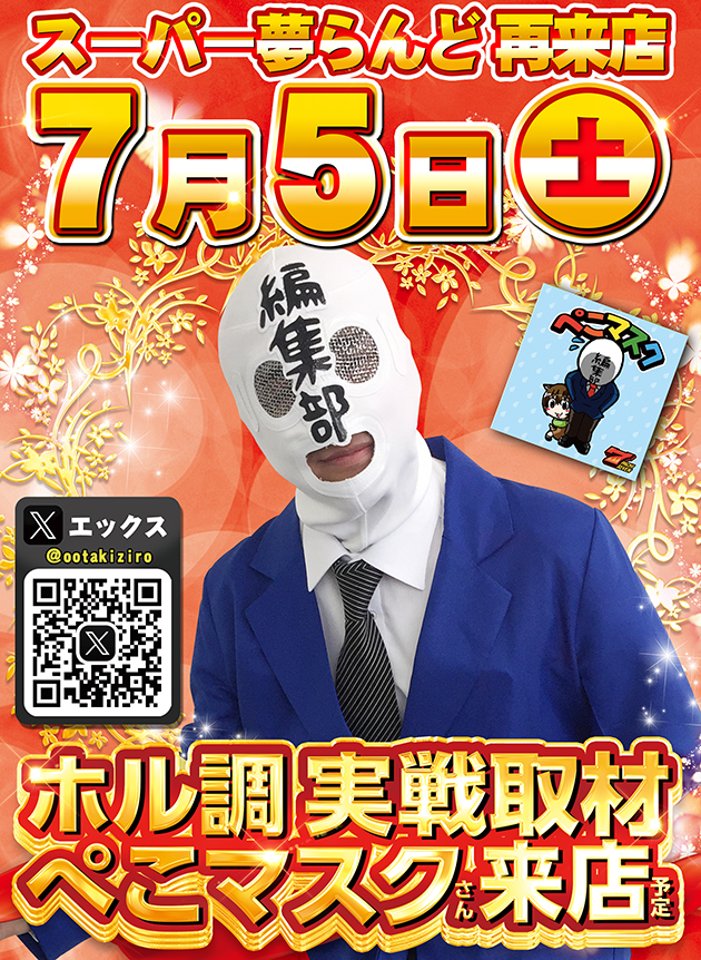 7月5日(土)パチ7ホル調『ぺこマスク』さん実戦来店予定!