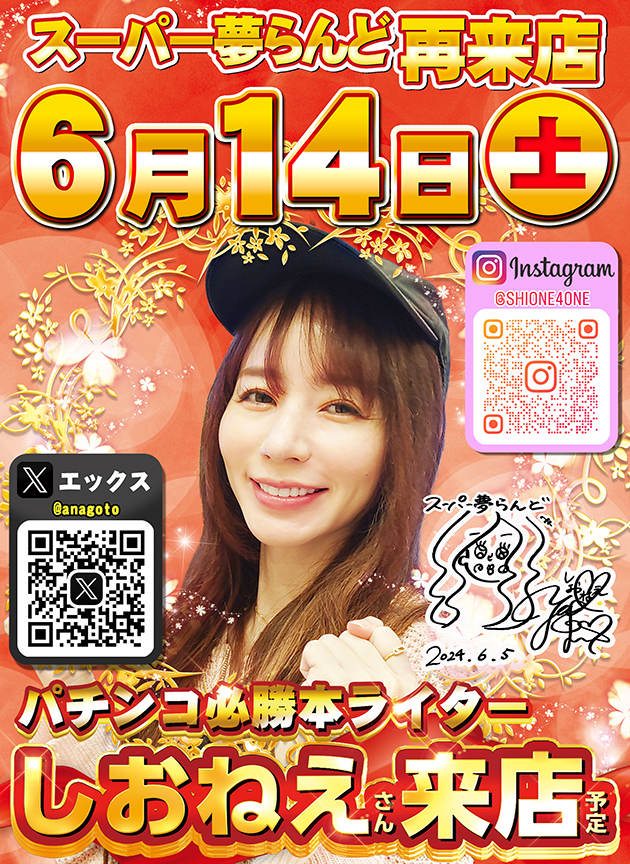 6月14日(土)『しおねえ』さん実戦来店予定!