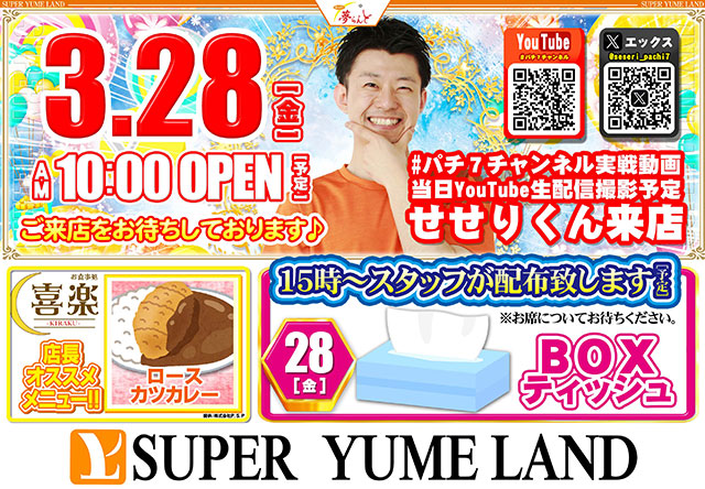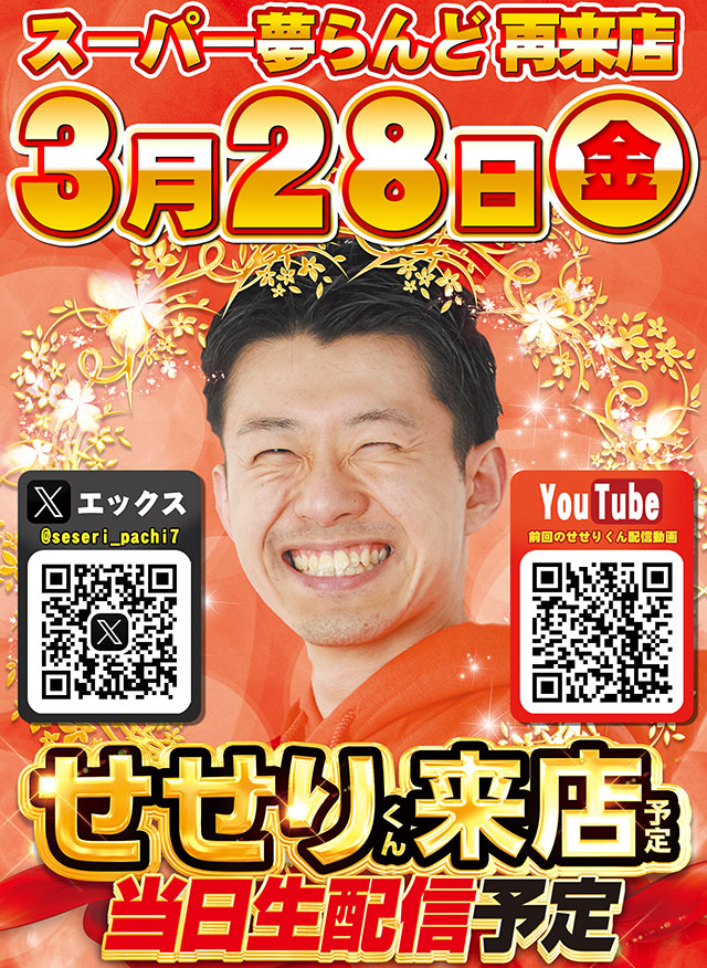 3月28日(金)パチ7調査員『せせりくん』実戦&生配信予定!