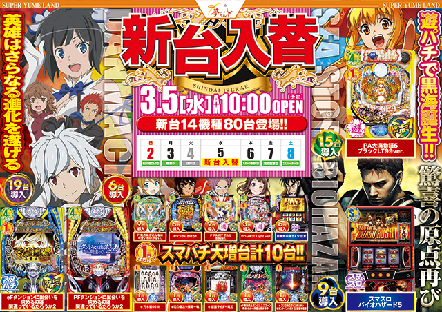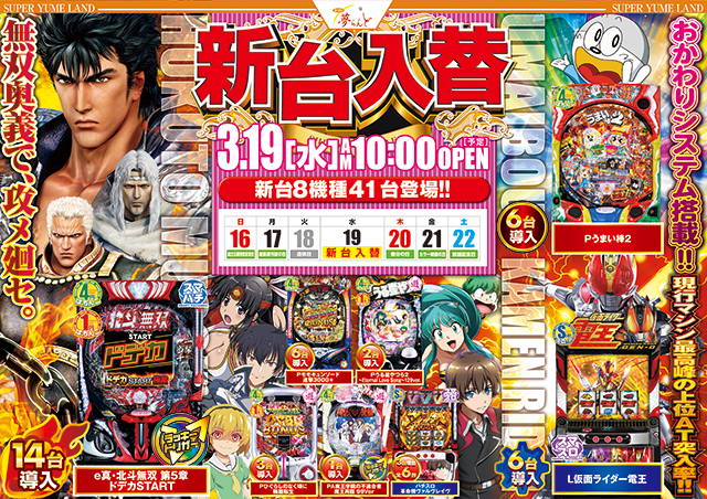 3/19(水)新台入替8機種41台 W実践来店予定!