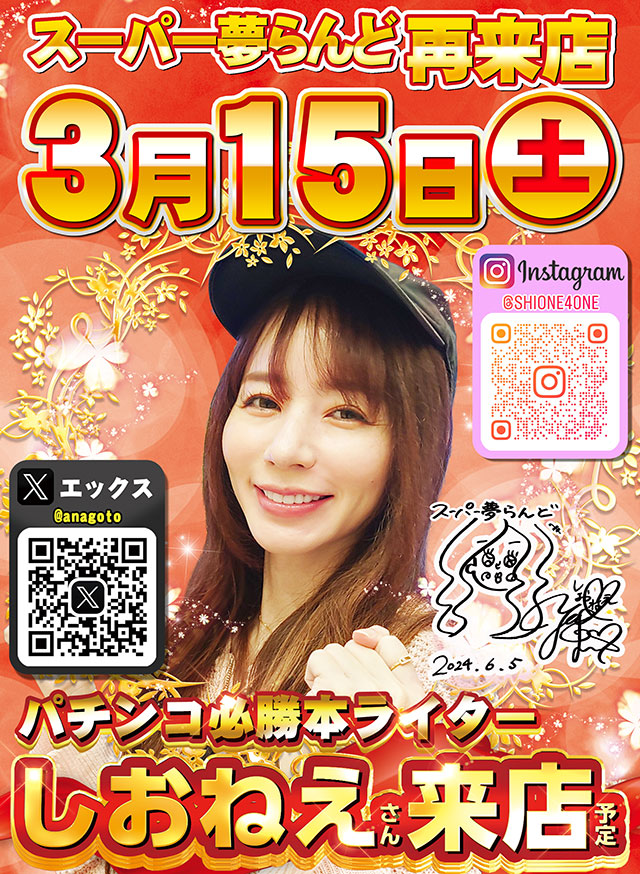 彩の国感謝デー連日開催 『しおねえ』さん実践来店予定!