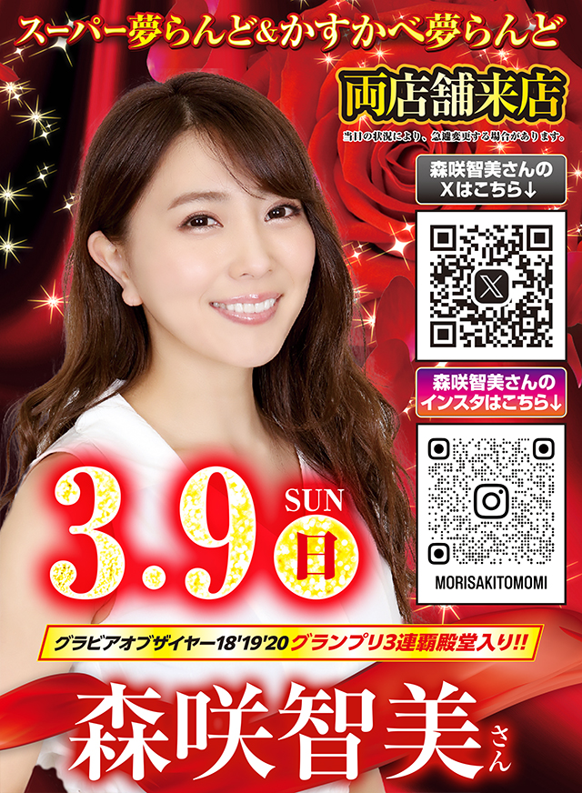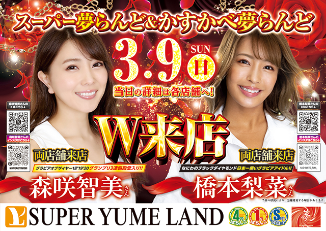3月9日(日)2店舗合同W来店!森咲智美さん&橋本梨菜さん!