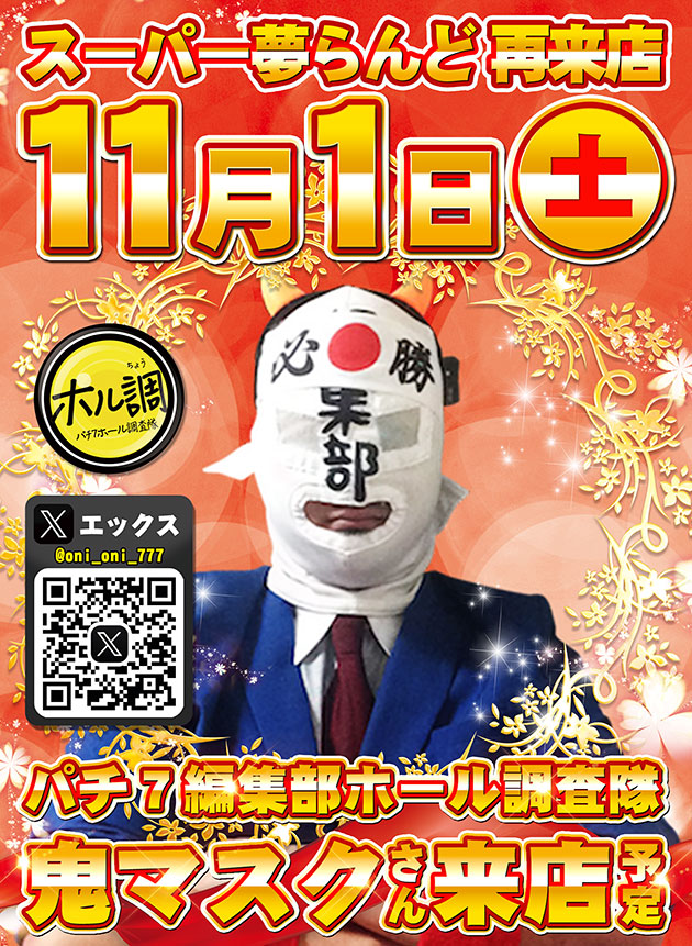 11/1(土)パチ7ホル調『鬼マスク』さん実戦来店予定!