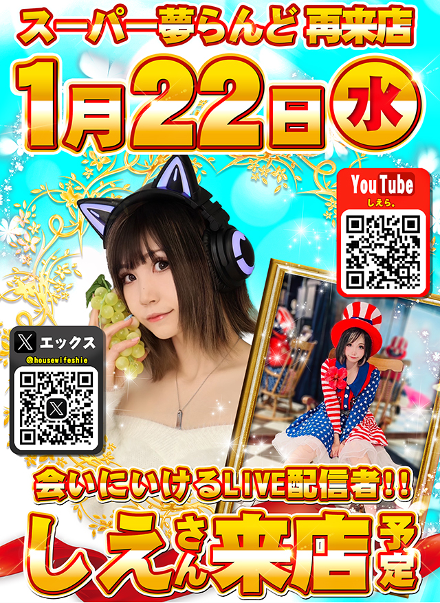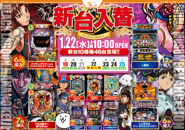 1月22日(水)新台入替10機種登場!『しえ』さん来店予定!