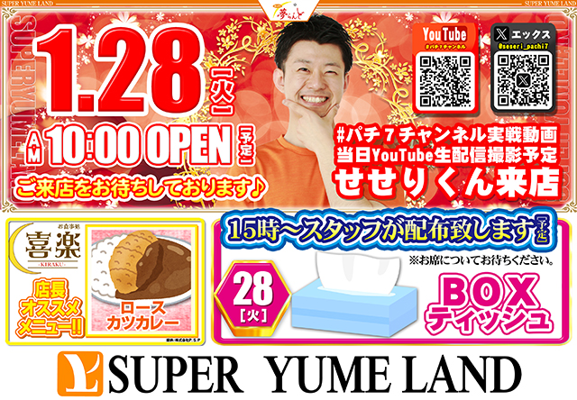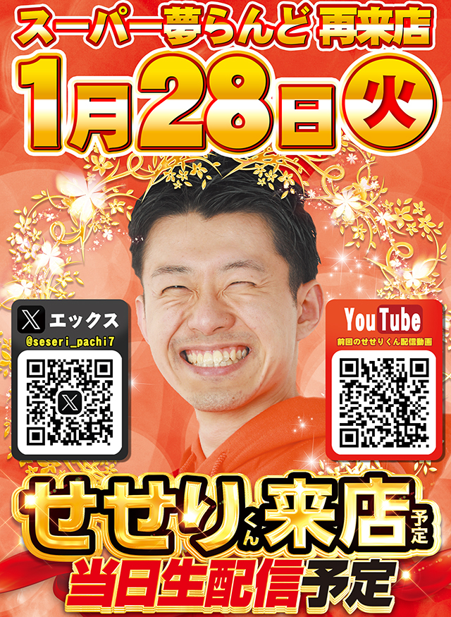 1月28日(火)パチ7『せせりくん』実践来店&生配信予定!