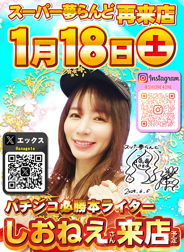 パチンコ・パチスロ感謝デー開催 『しおねえ』さん来店予定!!