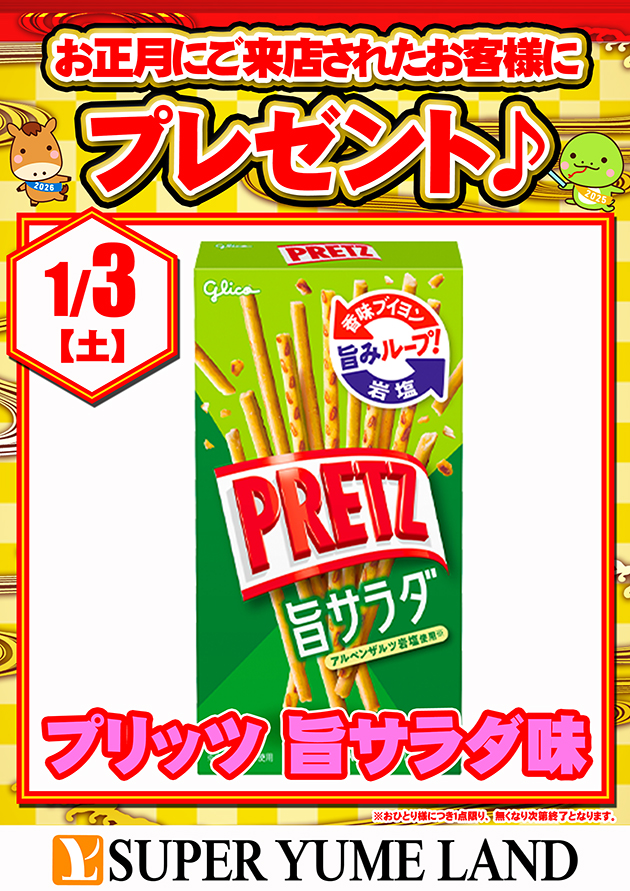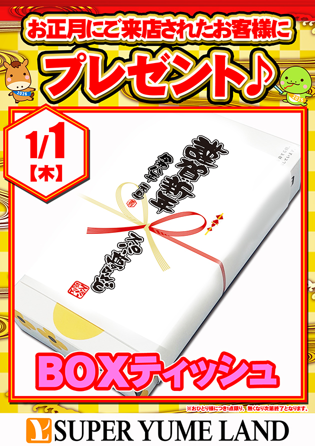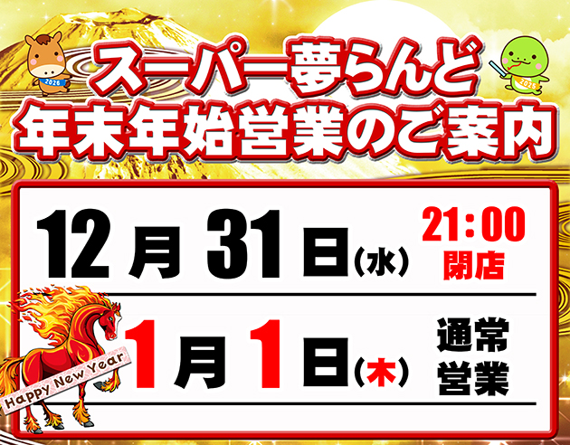1/1(木) 本年もスーパー夢らんどを宜しくお願い致します。