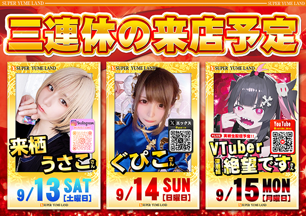 9/13(土)『来栖うさこ』さん実戦来店予定!