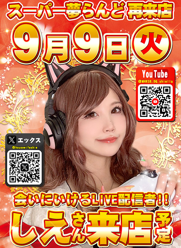 9/9(火)新台入替『しえ』さん実戦来店予定!