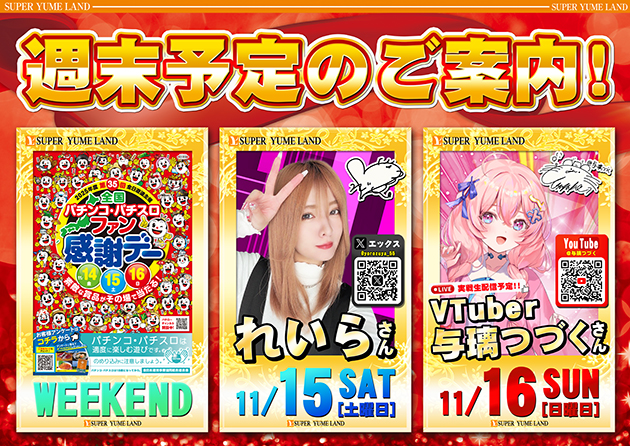 11/14・15・16『ファン感謝デー』3日間連日開催!