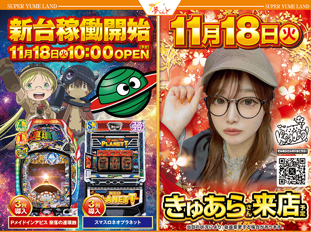 11/18(火)新台稼働開始『きゅあら』さん実戦来店予定!