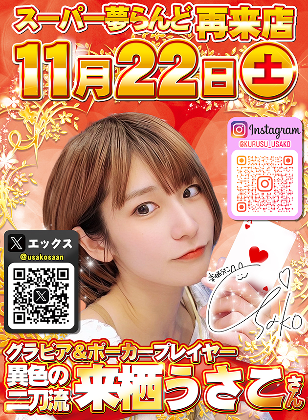 11/22(土)『来栖うさこ』さん実戦来店予定!