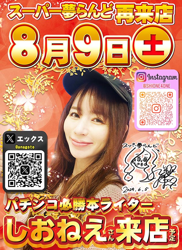 8/9(土)最新台導入済み!『しおねえ』さん実戦来店予定!