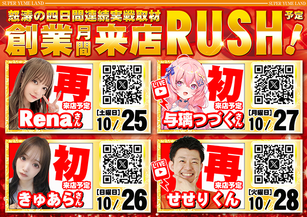 10/25(土)本日!創業日!『Rena』さん実戦来店予定!