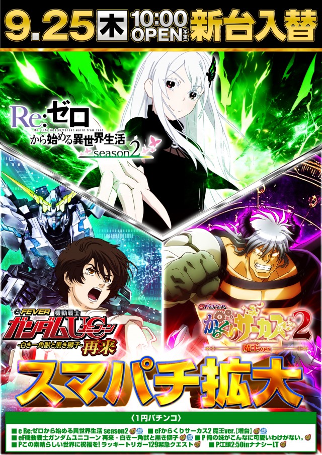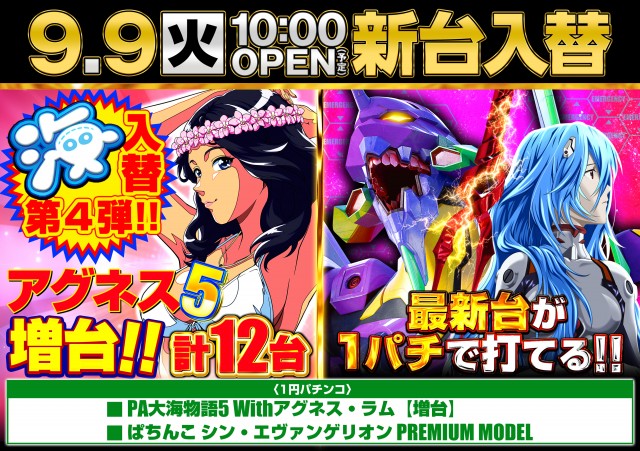 9.25 新台入替 スマパチ拡大×スマスロ人気機種増台!!
