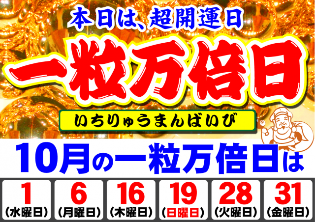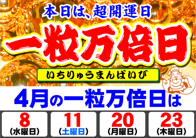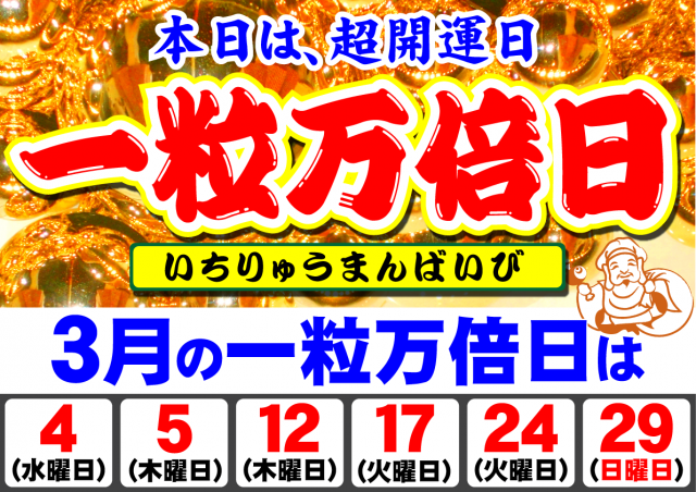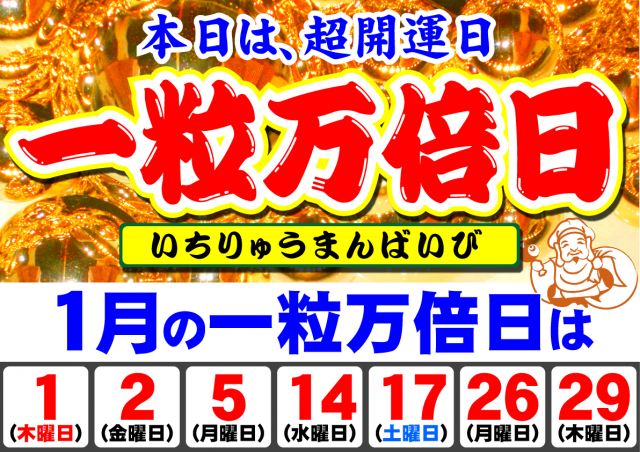 本日は超開運日=一粒万倍日=10時00分開店!!